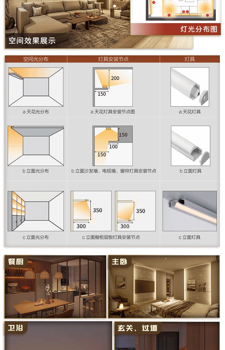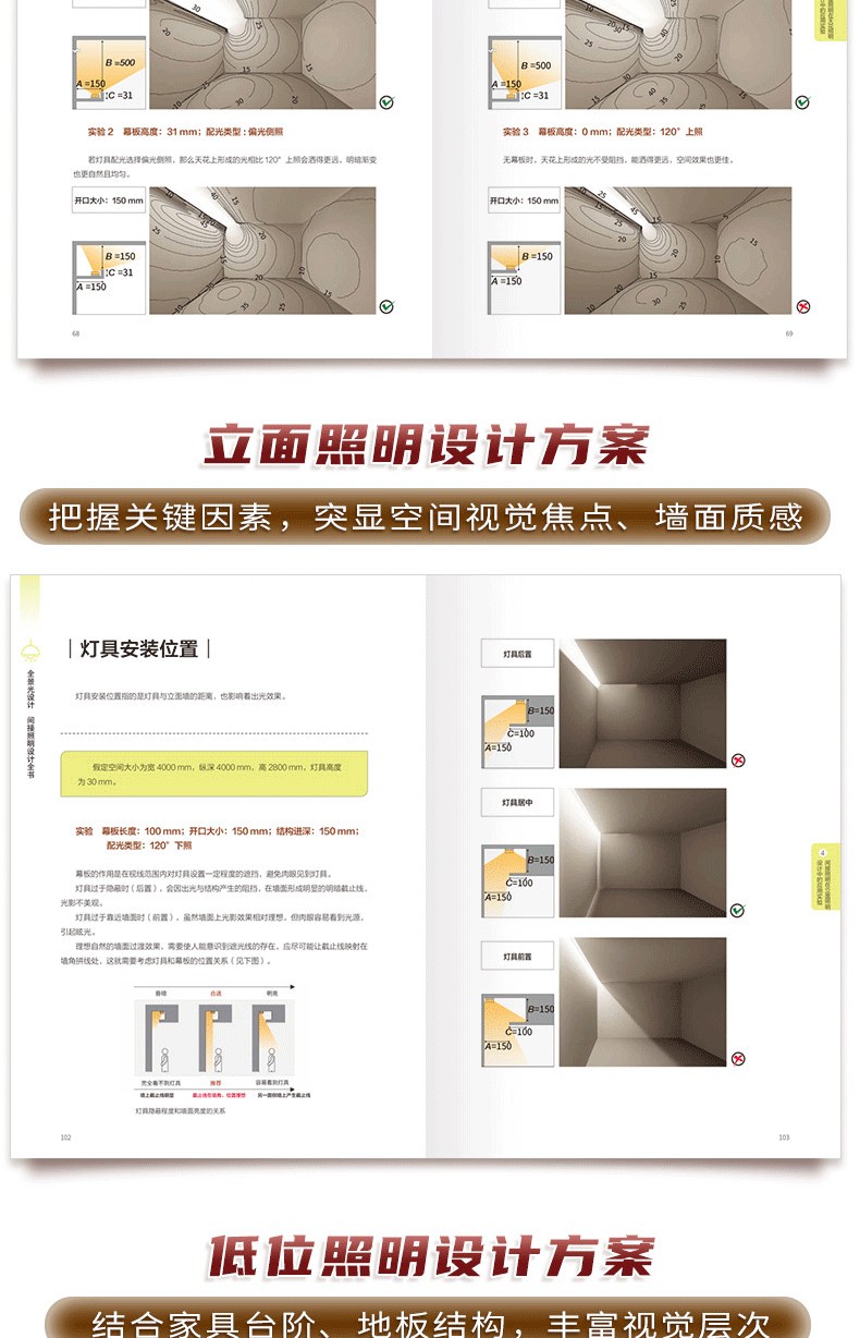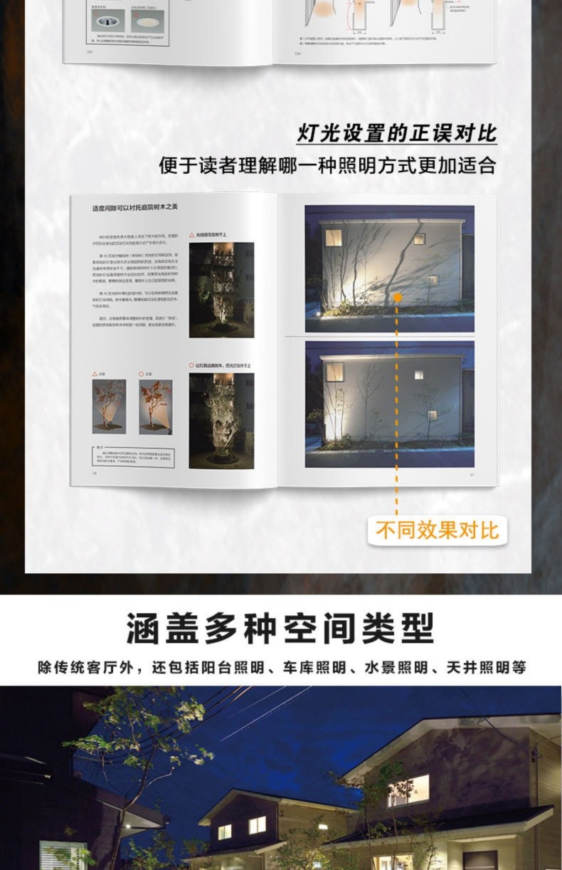 間接照明是室內照明設計中重要的用光手法,與目前火熱的所謂「無主燈」概念相似,都是注重空間整體的視覺體驗。 但其底層邏輯卻有著根本性的不同,相較而言,全景光設計理論體系中的間接照明設計 系統、科學、可落地,有著 深遠的設計實踐指導意義。 1.內容系統。 “以人為本”,對空間和行為進行梳理和 整合,以場景營造來滿足人們日常的視覺、情感和健康的光環境需求。 2.易讀易懂。 用淺顯的語言訓訓道來,用明晰的圖表和300張燈具安裝示意,圖解場景營造的方法。 並藉用經典案例和 闡明光與空間、建築、自然以及人們之間的關係。 3.職前訓練手冊、實操寶典。 過去室內設計師在設計完一個空間後,才會去思考空間的燈光,但往往到了那個階段,留給燈光發揮的空間已經很有限了。 這本保姆等級教學有助於設計小白從零基礎入門室內間接照明設計,少走彎路少踩坑。 經驗豐富的設計老司機也不妨在桌上放一本實操指南,方便翻閱,一目了然。